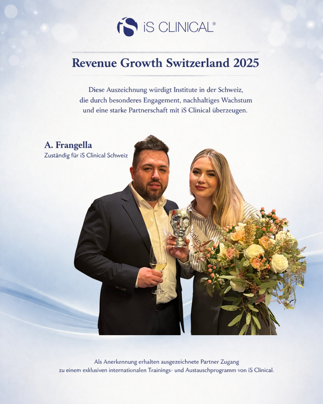 Die „Revenue Growth“-Auszeichnung ist für unser Institut ein wichtiger Meilenstein und bestätigt unseren Anspruch, mit ausgewählten High-End-Partnern zusammenzuarbeiten, um unseren Kundinnen nachhaltige und hochwertige Hautlösungen zu ermöglichen.