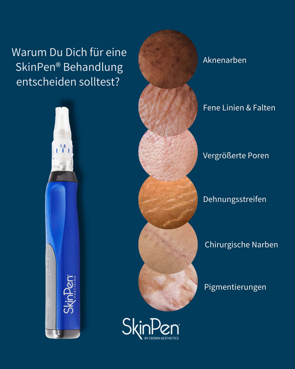 Beim SkinPen Microneedling werden mit sehr feinen Nadeln kontrollierte Mikroimpulse in der Haut gesetzt. Diese regen die natürliche Hauterneuerung an und aktivieren die Kollagen- und Elastinproduktion.